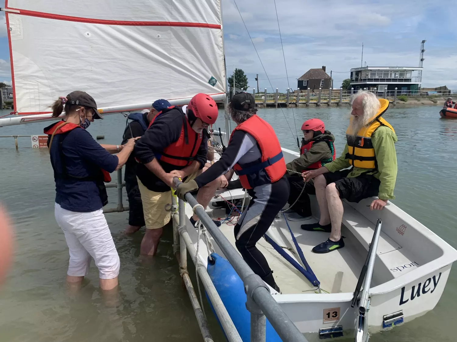 Based at Rye Harbour, RHS gives sailors the chance of sailing, on a regular basis, from April to October, in a dinghy with an experienced skipper and crew under the watchful eye of an RYA (Royal Yachting Association) Senior Instructor. We sail in adapted dinghies and only sail with our safety boat close at hand. Our charity is run entirely by volunteers. Refreshments and food are available to buy which provides a social setting for everyone to get to know each other and share experiences together. At each sailing day, held once or twice a month, during the sailing season, we cater for 30 or more people including sailors and volunteers. When the sailing season ends, we host social events and work together with the Hub on Rye Hill. Our sailors include people with autism, mild mobility issues, cerebral palsy, learning difficulties, dementia and mental health issues, who all enjoy sailing at Rye Harbour.