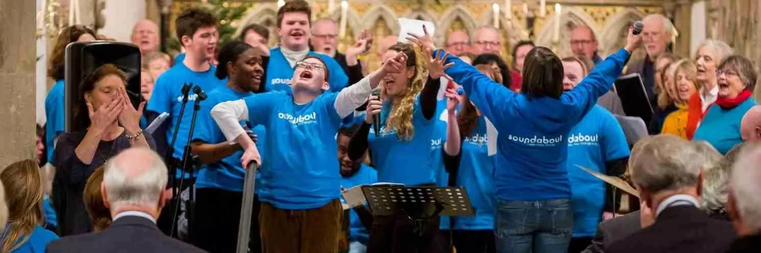 At Soundabout, we believe that everybody deserves to have a voice. Rather than focusing on what people can’t do, we want to emphasize what they can do. We believe that people with severe and profound learning disabilities including autism should have a life full of expression, passion and enjoyment. To enable this to happen we aim to educate, support and empower all those in our community. That’s why we use sound to enable people with learning disabilities to express themselves, connect with others, and feel the warmth of music. We want to create and maintain an open and accessible community where someone profoundly disabled can feel relaxed, safe, and enjoy themselves. We want to empower everyone to use their voice and create their own rhythm. Our music sessions bring children and adults with various and complex learning disabilities together alongside their families and carers to take part in music-making, from our inclusive and virtual choirs to our workshops.
